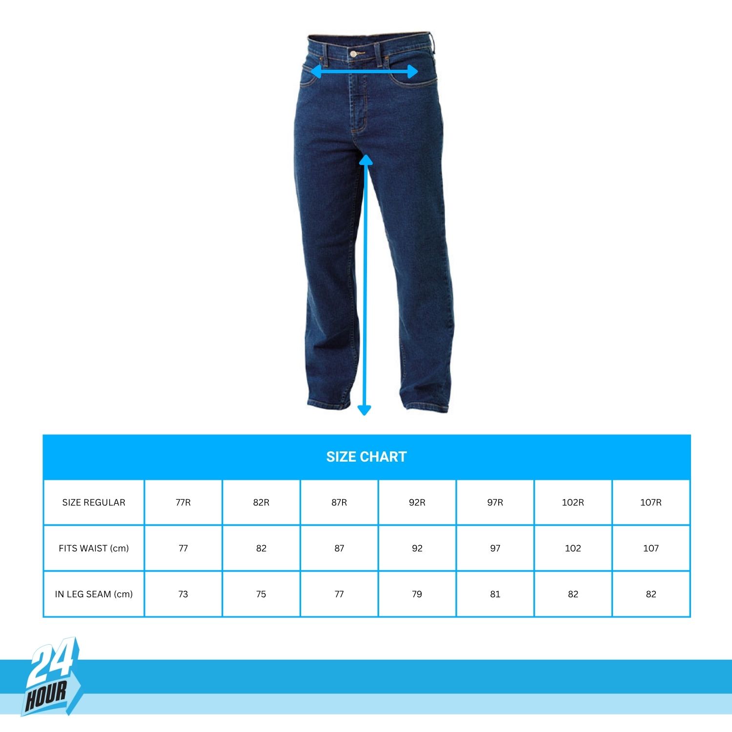 IN LEG SEAM (cm) 73 75 77 79 81 82 82 72 74 76 78 80 80 80 89 94 99 104